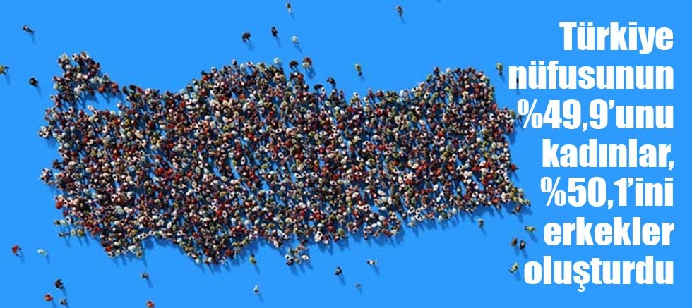 Türkiye İstatistik Kurumu (TÜİK) tarafından yapılan açıklamaya göre, Ülkemiz nüfusun %49,9'unu kadınlar, %50,1'ini erkekler oluşturdu.