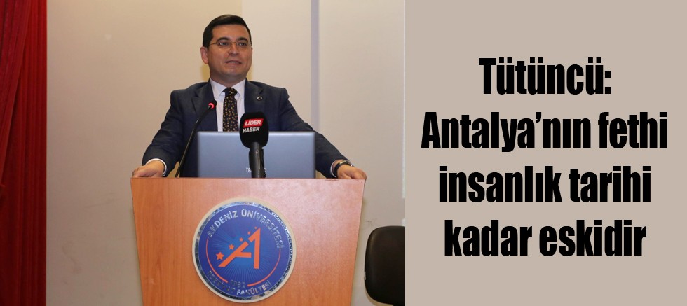 Antalya’nın Fethi’nin 815. Yılı kutlamaları kapsamında Akdeniz Üniversitesi Edebiyat Fakültesi’nde “Tarih ve Kültür” konulu sempozyum düzenlendi. Antalya Valisi Ersin Yazıcı, Akdeniz Üniversitesi Rektörü Prof.Dr. Özlenen Özkan’ın da katıldığı sempozyumda konuşan Kepez Belediye Başkanı Hakan Tütüncü, 5 Mart 1207 tarihinin Antalya’nın fetih tarihi olduğunu ve bu yıl bu güzel şehrin fethinin 815. yılının kutlandığını söyledi. Antalya’nın fetih tarihinin, insanlık tarihi kadar eski olduğunu belirten Başkan Tütüncü, “İşte! Bunun için aziz milletimiz açısından çok önemli. Çünkü uzak Asya’dan gelip Anadolu’yu yurt edinen orada Avrupa içlerine kadar açılan ilay-ı kelimetullah ülküsüyle dünyayı dolaşan, güneşin battığı yere doğru adım adım ilerleyen ecdadımız denizle, Akdeniz ile tarihi boyunca ilk kez burada tanıştılar. “ diye konuştu.