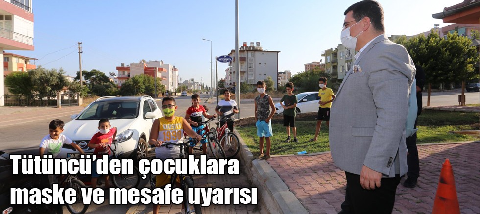Ayanoğlu Mahallesi’nde sokakta bisiklet süren çocuklarla sohbet eden Kepez Belediye Başkanı Hakan Tütüncü, yeni tip koronavirüs salgınından korunmak için maske takmaları, sosyal mesafeyi korumaları ve ellerini de bol bol yıkamaları konusunda uyarılarda bulundu.