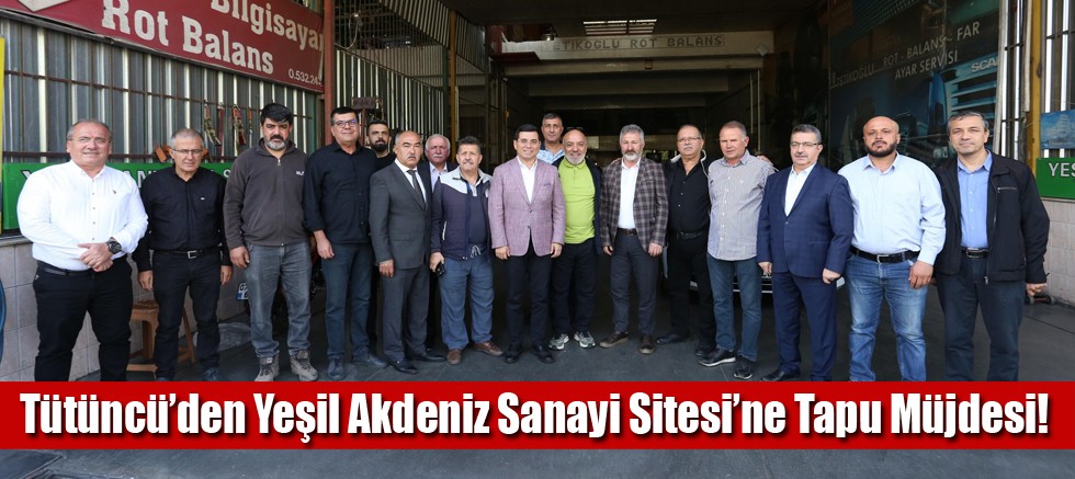Kepez Belediye Başkanı Hakan Tütüncü Yeşil Akdeniz Sanayi Sitesi esnafını kapı kapı ziyaret ederek ‘Hayırlı kazançlar’ diledi ve tapu müjdesi verdi. Yeşil Akdeniz Sanayi Sitesi’nin imar ve mülkiyet sorunlarının çözüldüğünü vurgulayan Başkan Tütüncü, Yeşil Akdeniz Sanayi Sitesi tapularının yılbaşından önce teslim edileceğini söyledi.