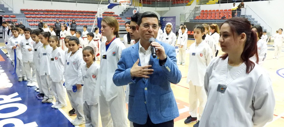 Tekvando diploma dağıtım törenine katılan Kepez Belediyesi ve Cumhur İttifakı Antalya Büyükşehir Belediye Başkan adayı Hakan Tütüncü, spor imkanlarını 19 ilçeye taşıyacaklarını söyledi