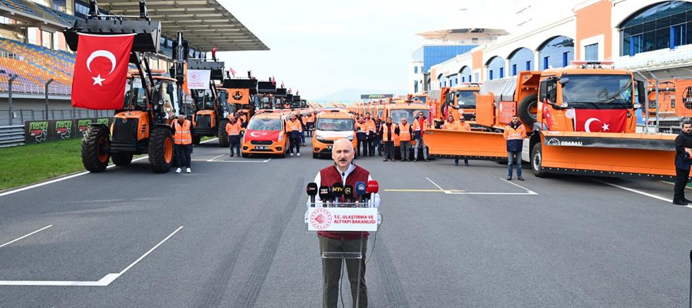 “Bu yıl, Karayolları Genel Müdürlüğü’nün makine parkına; satın alınan makine, araç, üst yapı ve ekipmanların yüzde 81’lik kısmı yerli imalattır. Yeni alımlarla birlikte, bugün itibarıyla; Karayolları Genel Müdürlüğü araç parkında; 5 bin 427’si hareketli makine olmak üzere, toplam 13 bin 734 makine ve ekipman hizmet vermektedir. Soğukların ve yağışların yaklaştığı bu günlerde, 2022-2023 sezonu kış programımızı da hazırladık. Planımıza göre; yurt genelindeki toplam 68 bin 725 kilometrelik karayolu ağımız üzerinde, 450 karla mücadele merkezimizde, 11 bin 490 makine ve ekipmanla, ayrıca 13 bin 52 personelimizle hizmet vereceğiz. Kış programında, karla mücadele çalışmalarında kullanılmak üzere; 610 bin ton tuz, 407 bin 795 metreküp tuz agregası, kritik kesimler için 17 bin 103 ton kimyasal buz çözücü ve çözeltisi ile 132 ton üreyi merkezlerimizde depoladık. Bunun yanında, karayollarımızdaki tipi ve esintilere karşı 851 kilometrelik kar siperi yaptık.”