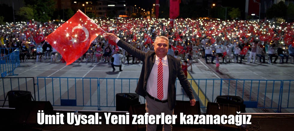 Başkan Uysal, kadın voleybol takımı sahneden inerken Muratpaşa Atatürk Kent Meydanı’nı dolduran binleri selamladı ve konuşmasına “30 Ağustos’ta Gazi Mustafa Kemal Atatürk’ün önderliğinde adeta küllerimizden doğarak, can havliyle, son gücümüzle ‘Bizi bu topraklardan kazıyamazsınız’, ‘Bizi tarih sahnesinden yok edemezsiniz’ dedik. Bu zafer, bize hem vatanımızı hem de demokratik, laik, sosyal hukuk devleti Türkiye Cumhuriyeti’ni kazandırdı” sözleriyle devam etti.
