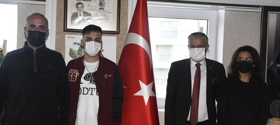 Orta Doğu Teknik Üniversitesi (ODTÜ) İngilizce Tarih Bölümünde okuyan Erkut Kurt ve Uludağ Üniversitesi İngilizce Öğretmenliği bölümünde okuyan Belgin Armağan Tamuçin, Belediye Başkanı Topaloğlu’na teşekkür ziyaretinde bulundu.