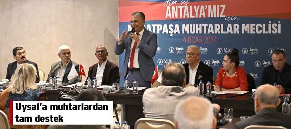 Muratpaşa’da yılın ilk Muhtarlar Meclisi’nde, Antalya Büyükşehir Belediye Başkanlığı için aday adaylığını açıklayan Ümit Uysal’a 55 mahalleli ilçesinden tam destek geldi. Muhtarlar, “İnşallah Büyükşehir Belediye Başkanı olursunuz” dedi.