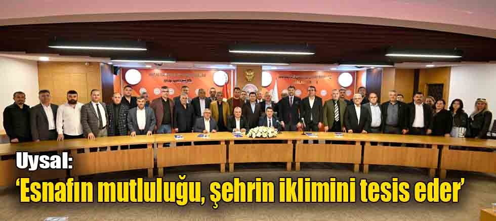 Muratpaşa Belediye Başkanı Ümit Uysal, Antalya Esnaf Ve Sanatkarlar Odaları Birliği (AESOB) Başkanı Adlıhan Dere ve tüm oda başkanlarıyla bir araya geldiği toplantıda “Esnafın mutluluğu, şehrin iklimini tesis eder” dedi