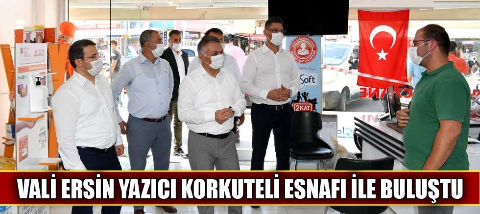 Vali Ersin Yazıcı Korkuteli esnaflarını ziyaret ederek onların hal ve hatırlarını sordu. Aynı cadde üzerinde bulunan pek çok işletmeyi gezen ve esnaflarla buluşan Vali Yazıcı, onlarla tek tek sohbet edip sorunlarını dinledi. Ayrıca yapılan keyifli sohbette esnaflara maske, mesafe ve hijyen kuralları hatırlatılarak el birliğiyle ve tek vücut mücadeleyle pandemi sıkıntısından kurtulabilineceğini ifade etti. Esnafların her birine tek tek hayırlı işler dileyerek, incelemelerde bulunmak üzere, ilçede yapımı süren ve yakın zamanda gençlerin hizmetine sunulacak, Sultan-Ahmet Gençlik Merkezi’ne geçti.