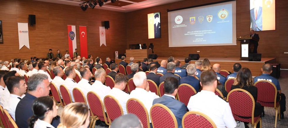 Kolluk Gözetim Komisyonu Kamu Farkındalığının Arttırılması Programı’na Vali Vekili Yalçın Sezgin’in yanı sıra Mülkiye Teftiş Kurulu Başkanı İbrahim Akın, Mülkiye Teftiş Kurulu Başkan Yardımcısı Hüseyin Kök, Hukuk Hizmetleri Genel Müdür Vekili Harun Sarıfakıoğlulları, Mülkiye Teftiş Kurulu Başkan Yardımcısı Yavuz Selim Akkoç, Büyükşehir Belediyesi Genel Sekreteri Cansel Tuncer, Cumhuriyet Başsavcısı Zafer Koç, Kaymakamlar, İl Jandarma Komutanı Tuğgeneral Tarık Hekimoğlu, İl Emniyet Müdürü Orhan Çevik, Sahil Güvenlik Antalya Grup Komutanı SG. Yarbay Murat Sezgin, Kurum Müdürleri, Kamu Kurum Personeli, STK Temsilcileri ve vatandaşlar katıldı.