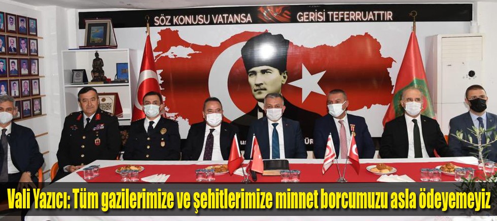 Son ziyaretini Şehit ve Gazi Aileleri Malulleri Yardımlaşma ve Dayanışma Derneği’ne gerçekleştiren Vali Yazıcı; “107 yıl önce Ulu Önder Gazi Mustafa Kemal Atatürk ve kahraman askerlerimiz vatanımızın geçilmeyeceğini tüm dünyaya göstermişlerdi. Bizler de aynı azim ve kararlılıkla vatanımızı ve bayrağımızı savunmaya devam ediyoruz. Bizler; vatan, bayrak, millet sevgisini tüm sevgilerden üstün tutan, şehitler ve gazilerle dolu bir milletiz. Gazi bir milletin nesli olmaktan şeref duymaktayım. Şehadeti göze alarak mücadele verip gazilik ve şehitlik mertebesine ulaşan tüm gazilerimize ve şehitlerimize minnet borcumuzu asla ödeyemeyiz. Milletçe ve Devletçe şehit ailelerimizin ve gazilerimizin her şartta ve daima yanlarında olmayı gönül borcu biliriz.” dedi.