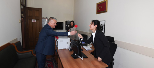 Kadın personele karanfil takdim eden Vali Yazıcı; “Bir toplumun kadına verdiği değer, karakterine ışık tutar. Türk kadını, toplumumuzun yapısını güçlendirip şekillendirerek, daima özverinin ve sevginin kaynağı olmuştur. Gelenek göreneklerimizin, tarihimizin, sosyal hayatımızın temel dinamiği kadındır. Bugünün Türkiye’sinde kadınlarımız; eğitimden sağlığa, yasama, yürütme ve yargıdan iş dünyasına kadar her alanda üstlendiği sorumlulukla Türk Milletinin geleceğe güvenle bakmasının teminatıdır. 8 Mart Dünya Kadınlar Günü vesilesiyle her anımızı aydınlatan bizlere güç ve güzellik veren tüm kadınlarımızın gününü kutluyorum. Sizlerin ellerinizin değdiği her şeyi güzelleştirdiğinizi biliyorum. Bunu yoğun çalışmalarımız içinde bile fark ediyorum. Emekleriniz için çok teşekkür ederim. Hepinize sağlık, başarı ve mutluluk dolu günler dilerim.” dedi.