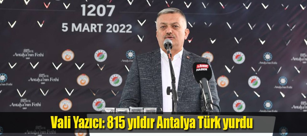Antalya’nın fethinin 815’inci yıl dönümü kutlamalarına hoş geldiniz diyerek sözlerine başlayan Vali Yazıcı; “Bizler, tarih boyunca çok büyük badireler atlatan ancak tüm sıkıntılara göğüs geren, kimliğinden ve geleneğinden ödün vermeyen bir ecdadın torunlarıyız. Bu uğurda gerektiğinde canını veren, fetihler gerçekleştiren, yiğitliği, merhameti ve ahlakıyla düşmanının dahi gönlünü fetheden bir milletin fertleriyiz. Bugünden 815 sene önce, 5 Mart 1207’de Anadolu Selçuklu Sultanı I. Gıyaseddin Keyhüsrev tarafından fethedilen bu şehir, adalet çağrısı üzerine, mazlumların yardım çağrısı üzerine fethedildi. O günden bugüne kadar da ecdadımız adaletli, merhametli, hoşgörülü bir anlayışla bu şehirde yaşadı. Bu topraklarda kuruyan vicdanları, Türk-İslam medeniyetinin pınarlarıyla yeşerttiler. Bu şehri ihya ettiler. Bu şehirde bir medeniyet inşa ettiler. Tarihimizi sadece yaptığımız savaşlarla okumamalıyız. Ecdadımızın kültürel miraslarını, bizlere bıraktığı medeniyet tasavvurunu da anlayarak okumalıyız. Ulu Önder Gazi Mustafa Kemal Atatürk, ‘Türk çocuğu ecdadını tanıdıkça, daha büyük işler yapmak için kendinde kuvvet bulacaktır.’ diyor. Antalya’ya baktığımızda, hemen yanı başımızdaki Kaleiçi’ne baktığımızda, bu kuvveti kendimizde bulacağımıza yürekten inanıyorum.” şeklinde konuştu.