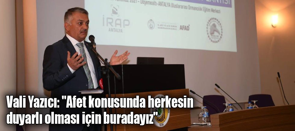 Afetlere karşı alınacak önlemler ve yapılacak çalışmaların gözden geçirildiği toplantıda Vali Yazıcı; “Afet öncesi Antalya’da yapılan hazırlık çalışmalarını gözden geçirmek için buradayız. Şehrimizde herhangi bir afet olduğunda başta sizler olmak üzere burada bulunmayan diğer kamu kurumlarının yöneticilerinin de hatta özel sektör temsilcilerinin de afetle ilgili neler yapabileceğini tartışmak, planlamak için buradayız. Aldığımız tedbirleri değerlendirip, eksiklerimiz varsa bu eksikliklerin giderilmesi noktasında yeni görevler belirleyeceğiz.” ifadelerini kullandı.