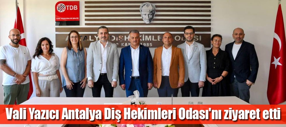 Antalya Diş Hekimleri Odası Başkanlığına yeniden seçilen Dr. Gassan Yücel ve yeni Yönetim Kurulu Üyelerini ziyaret eden Vali Ersin Yazıcı, görevlerinde başarı dileklerinde bulundu. Ağız ve diş sağlığının önemine dikkat çeken Vali Yazıcı; “Ağız ve diş sağlığının önemini özellikle çocuklarımıza iyi anlatmalıyız.” dedi.