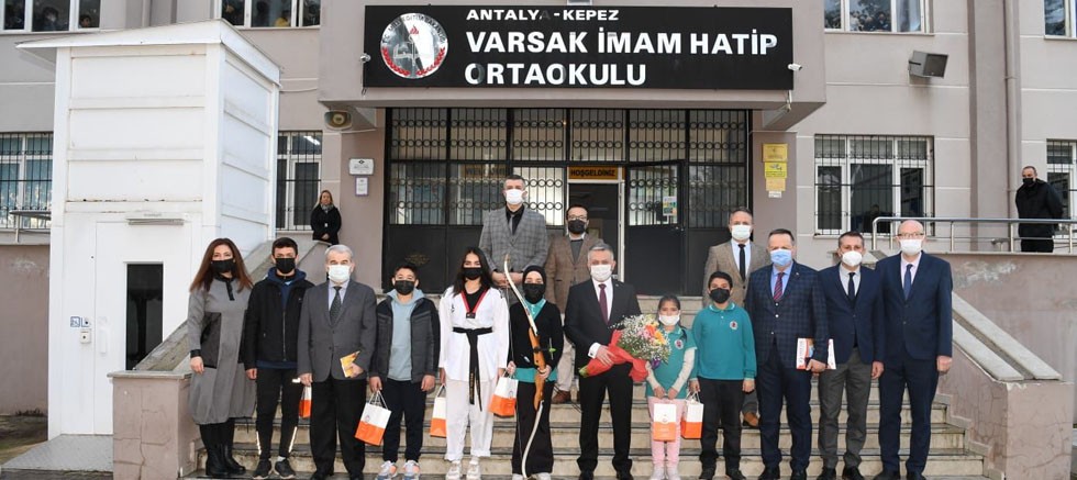 Antalya’da ilkokul, ortaokul ve liselerde yürütülecek eğitim öğretim faaliyetlerini planlamak ve bu kapsamda eğitimde nitelik ve kaliteyi arttırmak amacıyla başlatılan AHENK Projesi kapsamında 2021-2022 Eğitim-Öğretim yılı ikinci döneminin başlamasıyla ziyaretlerine hız kesmeden devam eden Vali Ersin Yazıcı, Varsak İmam Hatip Ortaokulu öğretmen ve öğrencileriyle bir araya geldi. Ziyarette Vali Yazıcı’ya Kepez Kaymakamı Nusret Şahin ve İl Milli Eğitim Müdür Yardımcısı Mehmet Karakaş eşlik etti.