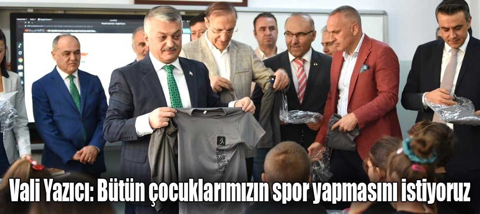 Öğrencilerde spor kültürünün yaygınlaştırılması ve geliştirilmesinin önemine vurgu yaparak sözlerine başlayan Vali Yazıcı; “İl Milli Eğitim Müdürlüğü ile Gençlik ve Spor Müdürlüğü’nün koordinesinde gerçekleştirdiğimiz bu örnek projemizle bugün öğrencilerimize spor kıyafetlerini hediye edeceğiz. Tabi spor yaparken birtakım ihtiyaçlarımız oluyor. Bu noktada bize gönlü güzel hayırseverimiz Nevzat Güven destek verdi. Projemize verdiği destekten dolayı Nevzat Bey’e teşekkür ediyorum. Rabbim hayırlarını kabul etsin.” dedi.
