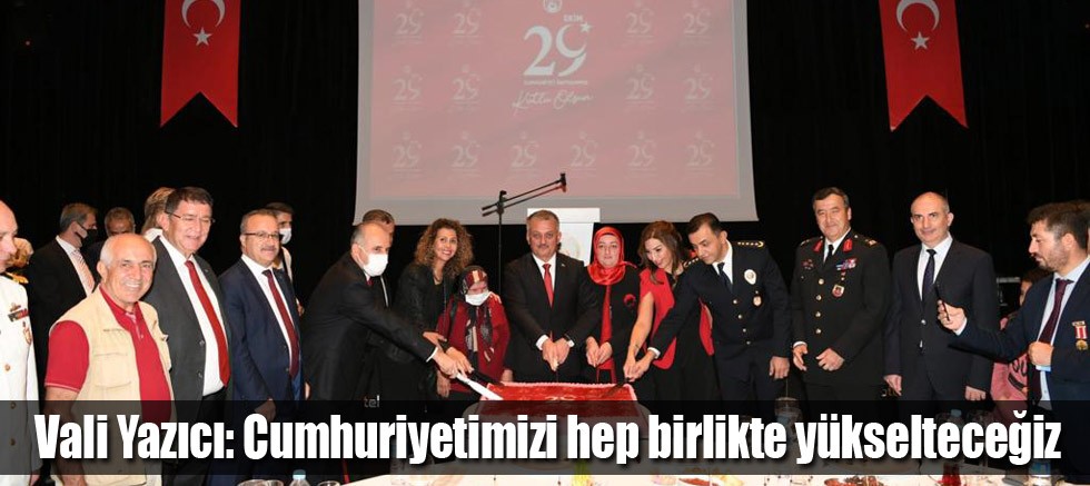 Cumhuriyet'in 98'inci yıl dönümü kutlamaları dolayısıyla Vali Ersin Yazıcı ve eşi Hanife Yazıcı’nın ev sahipliğinde 29 Ekim Cumhuriyet Bayramı Resepsiyonu düzenlendi. Resepsiyonda konuşan Vali Yazıcı; "Binbir zorluklarla kurulan ve atalarımızın bizlere emaneti olan Cumhuriyetimizi hep birlikte yükselteceğiz.” dedi.