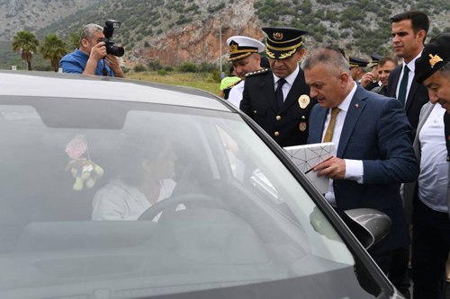 Huzurevindeki bayramlaşmanın ardından Döşemealtı ve Aksu uygulama noktasına geçen Vali Yazıcı, kontrol noktasındaki görevlilerin ve kontrol için durdurulan sürücülerin bayramını kutlayarak, vatandaşlardan trafik kurallarına uymalarını istedi. İçişleri Bakanlığı’nın başlattığı Bayramınız Kemerli Olsun projesi kapsamında yola çıkan sürücüleri özellikle kemer takmaları konusunda uyaran Vali Yazıcı; “Döşemealtı Uygulama Noktasında Bayram tatili için Antalya’mızı tercih eden misafirlerimizle, sevdikleriyle bayramlaşmak için yollara düşen sürücülerimizle ve Ramazan Bayramını görevlerinin başında geçiren jandarmamız ve polisimizle bayramlaştık. Bayramımız Kemerli Olsun.” dedi.