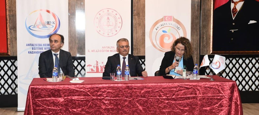 2022-2023 Eğitim-Öğretim döneminin öğretmen, öğrenci ve veliler için hayırlı ve uğurlu olmasını dileyerek sözlerine başlayan Vali Yazıcı; “AHENK Projesi geçen yıl Ekim ayında başladı. Yine siz kıymetli öğretmenlerimiz ve idarecilerimizle bir araya gelerek bir yol haritası belirleyerek çalışmalarımıza başladık. AHENK Projemiz sizlerin özverili çalışmalarıyla başarılı sonuçlar almaya şimdiden başladı. Bunların hepsi sizlerin sayesinde oldu. Ben Türk öğretmenine sonuna kadar güveniyorum. İnanıp, istediğinde başaramayacağı hiçbir şey olmadığına inanıyorum. Anadolu’da bir öğretmenin bir köyü, bir beldeyi bazen de küçük bir ilçeyi değiştirip dönüştürdüğünün binlerce hikayesi vardır. Bu hala da devam ediyor. Bu dünyayı değiştirme ve dönüştürme becerisine sahip bir liderler var bir de siz çok değerli öğretmenler varsınız. Liderler çok azdır ama sizler ülkemizin her köşesinde ilim ışığını yaymaya devam ediyorsunuz. AHENK Projemiz sizinle başarıya ulaştı. Tüm emekleriniz için teşekkür ediyorum. Bu yıl da gayretle çalışmaya okuyan bir nesil ve geleceğimiz için iyi insanlar yetiştirmeye devam edeceğiz. Hepinize emekleriniz için çok teşekkür ediyorum.” ifadelerini kullandı.