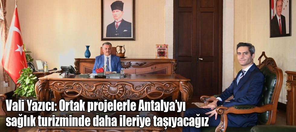 Özellikle günümüzde alternatif turizm çeşitlerinin önem kazandığına dikkat çeken Vali Yazıcı, sağlık turizminin çok önemli bir fırsat olduğunu ve dünyada giderek önem kazandığını dile getirdi. Vali Yazıcı konuşmasına şöyle devam etti: “Antalya; denizi, kumu, güneşi ve tarihi dokusuyla çok güzel bir yer. Sahip olduğu doğa ve iklimin yanı sıra, Antalya tarihi ve kültürel değerlerin zenginliğiyle turistlerin beklentilerini karşılaması açısından bize sonsuz fırsatlar sunmaktadır. Turizmin başkenti bu güzel şehrimizde turizmi daha fazla nasıl çeşitlendirebileceğimiz adına sürekli çalışmalar yürütüyoruz. Turizmi çeşitlendirme noktasında sağlık turizmi çok önemli bir fırsat olduğunu düşünüyorum. Antalya’nın sağlık turizmi konusunda çok önemli bir altyapısı var. Bu konuyu çok iyi değerlendirerek değere dönüştürmeliyiz. Antalya’nın sağlık turizminden gerekli payı alması için ortak çalışmalar gerçekleştireceğiz. Yeni görevinizin Antalya’mıza hayırlı olmasını diliyor, çalışmalarınızda başarılar diliyorum.”