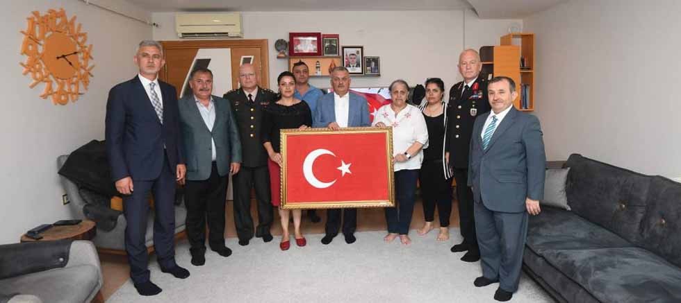 Vali Yazıcı şehit aileleri ile sohbetin ardından ailelere Türk Bayrağı hediye ederek hatıra fotoğrafı çektirdi.