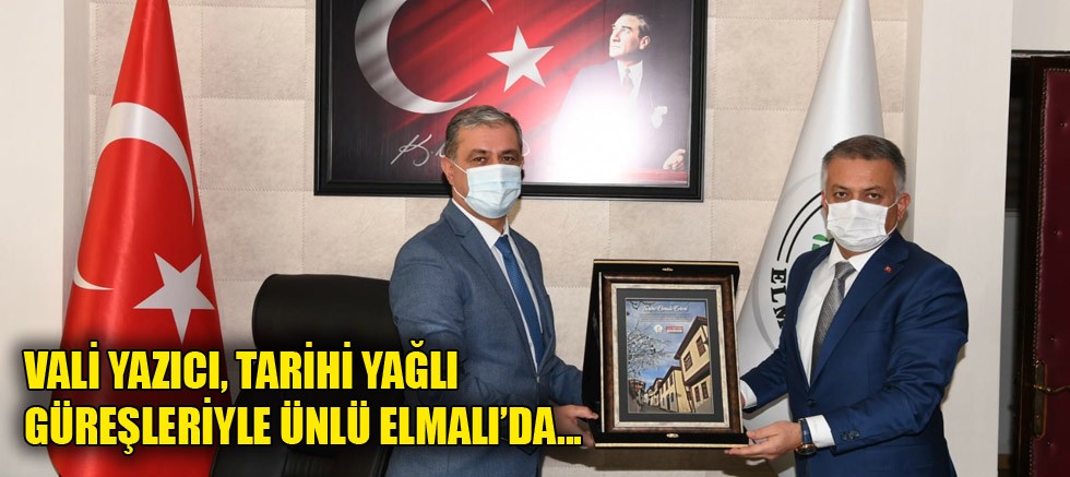 Vali Yazıcı ve beraberindeki heyet daha sonra Elmalı Belediyesi’ne geçerek Belediye Başkanı Halil Öztürk’ten belediye çalışmaları ve projeleri hakkında bilgi aldı. Tarihi Elmalı Yağlı Güreşleri ve ilçe hakkında bilgilerin alındığı ziyarette, pandemi sürecinde alınan tedbirlerle ilgili konuşuldu.