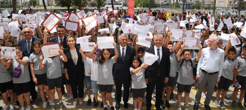 Manavgat Atatürk İlköğretim Okulu, anasınıfı, 1’inci ve 4’üncü sınıf öğrencilerine 2022-2023 Eğitim-Öğretim döneminin yıl sonu karnelerini veren Vali Ersin Yazıcı; “Kıymetli çocuklarım bütün dönem boyunca çalıştınız. Bu yüzden de iyi bir tatili hak ettiniz. Yazın bol bol gezin, eğlenin, dinlenin, spor yapın. Vali amcanızın sizden tek bir ricası var lütfen kitap okumayı unutmayın. Sevgili velilerim eğer çocuklarımız kitap okumayı unutursa siz onlara hatırlatın. Kıymetli yavrularım tatiliniz başladı. Sizleri sağlıkla uğurluyorum Eylül ayında da sağlıkla ve mutlulukla sizleri kucaklamak için bekliyor olacağım. Allah’a emanet olun.” dedi.
