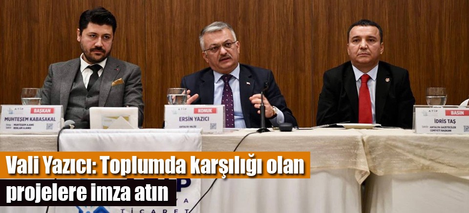 Sözlerine organizasyonda emeği gelenlere teşekkür ederek başlayan Vali Yazıcı; “Antalya’mızın nabzını tutan, şehrin dinamikleriyle birlikte burada olmaktan son derece mutluyum. Sizler bu şehrin adeta birer aynası ve yansımasısınız. İnşallah gerçekleştireceğimiz fikir alışverişleriyle, şehrimizi el birliğiyle daha da iyi yerlere taşıyacağız.” dedi.