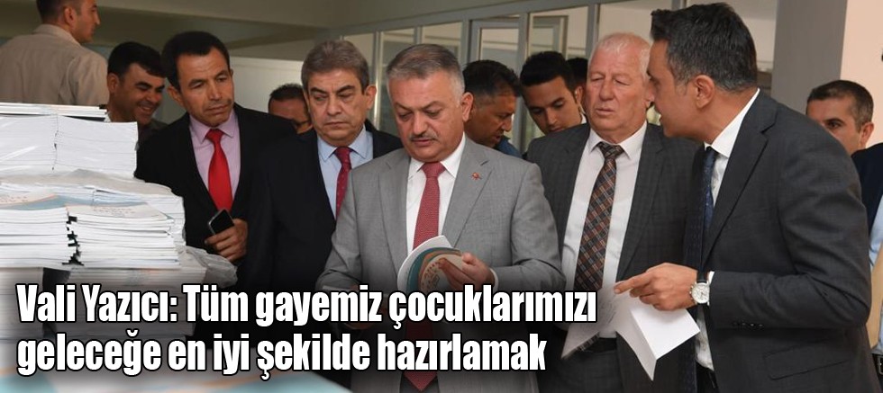 Vali Ersin Yazıcı, yeni eğitim-öğretim yılında öğrencilere ücretsiz dağıtılmak üzere Milli Eğitim Bakanlığı tarafından gönderilen ders kitabı ve yardımcı kaynakların bulunduğu kitap deposunda incelemelerde bundu. Kitap deposunda basın mensuplarına açıklamalarda bulunan Vali Yazıcı, tüm gayelerinin çocukları geleceğe en iyi şekilde hazırlamak olduğunu söyledi.