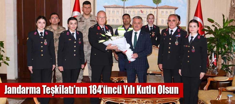 Jandarma Teşkilatının 184’üncü kuruluş yıl dönümü kutlama etkinlikleri kapsamında, Vali Ersin Yazıcı İl Jandarma Komutanı Tuğgeneral Tarık Hekimoğlu ve beraberindeki heyeti makamında kabul etti. Vali Yazıcı ziyarette; “Jandarma Teşkilatımız, Türk milleti var oldukça durmaya devam edecek.” dedi.