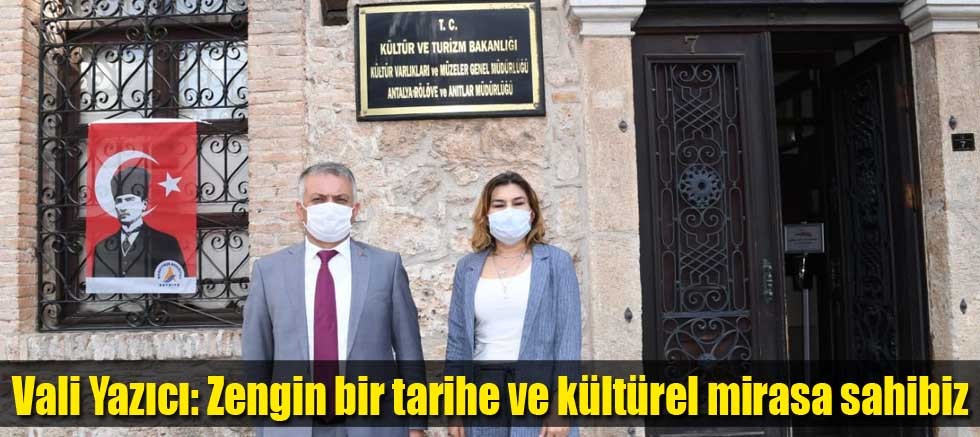 Vali Yazıcı, tarihi Kaleiçi’nde bulunan Antalya Kültür Varlıklarını Koruma Bölge Kurulu Müdürlüğü ve Antalya Rölöve ve Anıtlar Müdürlüğü’nü ziyaret etti. Vali Yazıcı ziyaretinde Antalya’nın eşsiz iklimi, doğal güzellikleri kadar zengin bir tarihe ve kültürel mirasa sahip olduğunu belirtti.