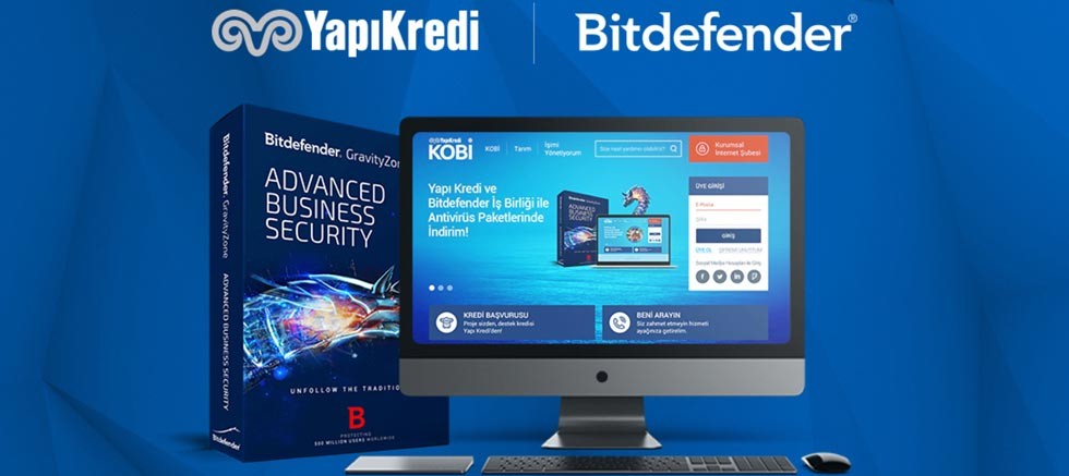 Son 10 yılda en fazla yılın ürünü seçilen lider global güvenlik yazılımları şirketi Bitdefender Antivirüs ile Türkiye’nin sınırları kaldıran bankası Yapı Kredi arasında yapılan iş birliği sayesinde, Yapı Kredi KOBİ web sitesine üye olan KOBİ bankacılığı müşterileri, Bitdefender Antivirüs’ün kurumsal güvenlik çözümü GravityZone’a yüzde 30 indirim ile sahip olabilecek.