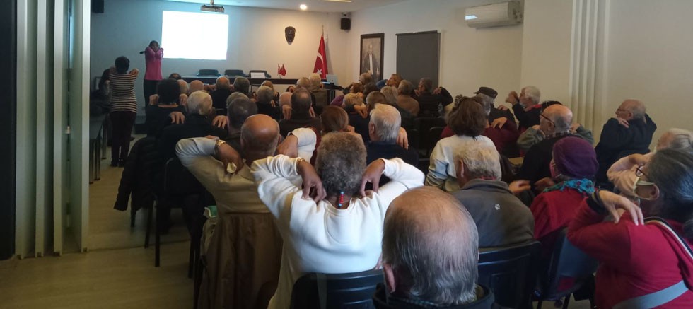 Antalya Kent Konseyi Emekliler Meclisi’nin Yaşlılıkta Doğru Beslenme seminerine yoğun ilgi oldu. Seminer öncesi egzersiz öğretmeni eşliğinde 10 dakikalık göz ve omuz egzersizi yapıldı.