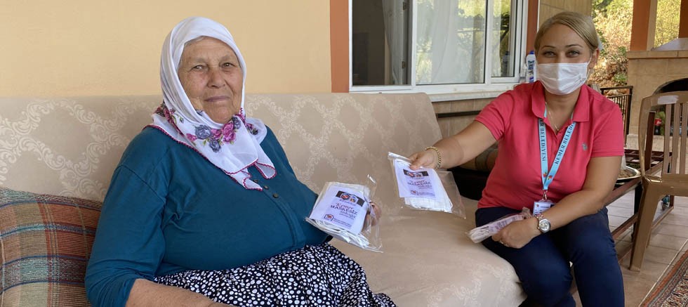 Kemer Belediyesinin koronavirüse karşı aldığı tedbirler kapsamında halkın ayağına kadar maske götürmeye devam ediyor.
