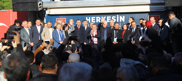 Konuşmaların ardından Başkan Muhittin Böcek, CHP Antalya Milletvekilleri, CHP Antalya İl Yönetim, İlçe Başkanları, İlçe Belediye Başkanları, İlçe Belediye Başkan Adayları sahneye topluca çıkarak, el ele halkı selamladı.