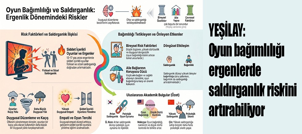 Yeşilay Bilim Kurulu Üyesi Dr. İlyas Kaya konuyla ilgili açıklamasında, “Online oyun bağımlılığı ile öfke ve saldırganlık arasındaki ilişkiyi tek yönlü bir neden-sonuç çerçevesinde ele almak, bu olgunun karmaşık yapısını yeterince yansıtmıyor. Söz konusu ilişkinin, karşılıklı ve döngüsel etkileşimleri barındıran çok boyutlu bir dinamiği var. Bu dinamiğin biçimlenmesinde bireysel özellikler, duygu düzenleme becerileri ve çevresel faktörler belirleyici bir işlev üstleniyor.