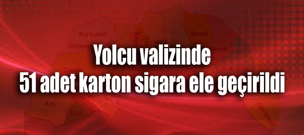 "Gazipaşa Cumhuriyet Başsavcılığı koordinesinde; Antalya İl Jandarma Komutanlığına bağlı Manavgat İlçe Jandarma Komutanlığı ekipleri tarafından; 31.03.2022 tarihinde Gazipaşa İlçesi, Güney J.Krk.K.lığı Yol Kontrol Noktasında icra edilen kimlik kontrolünde A.Turizm Seyahat Firmasına ait otobüste yapılan kontrolde, otobüste yolcu olarak bulunan H.D isimli şahsın şüpheli hareketlerde bulunması üzerine şahsa ait valizde Narkotik Köpeği ile yapılan aramada 51 adet karton sigara(510 adet sigara paketi) ele geçirilmiştir.