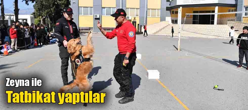 Sivil Savunma Günü nedeniyle Konyaaltı Belediyesi Destek Hizmetleri Sivil Savunma Birimi ekipleri arama kurtarma köpeği Zeyna ile Konyaaltı ilçesinde bulunan okullarda acil durum eğitimi ve deprem tatbikatı gerçekleştirdi.
